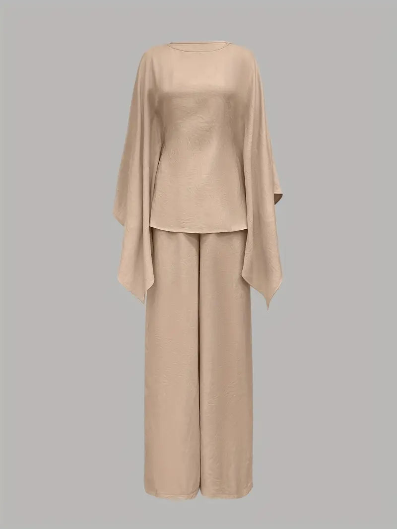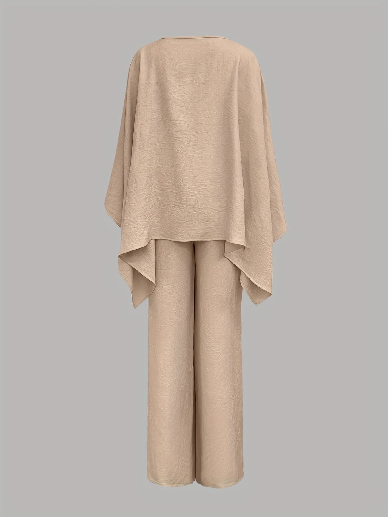 Discover the perfect blend of comfort and style with this Beige Belted Batwing Sleeve Co-Ord Set. Designed for those who appreciate elegance with ease, this set features a loose-fitting batwing sleeve top paired with matching relaxed-fit pants. The neutral beige color offers a sophisticated, timeless look that transitions seamlessly from casual to semi-formal occasions.