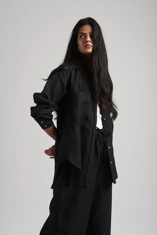 This black linen set offers the perfect blend of comfort and style. Made from breathable cotton, it keeps you cool during busy days, whether at work or running errands. Feel relaxed and look polished effortlessly.