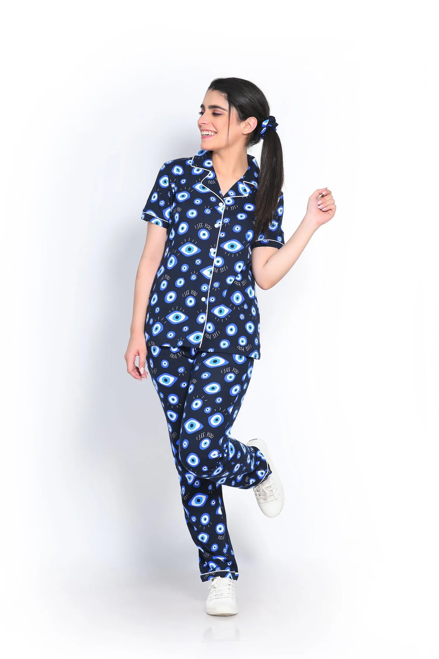 Our Evil Eye design adds a touch of fashion to your nightwear. You can lounge in style while enjoying the relaxed fit. Perfect for unwinding at home or a cozy evening with friends. Comfort meets elegance effortlessly.
