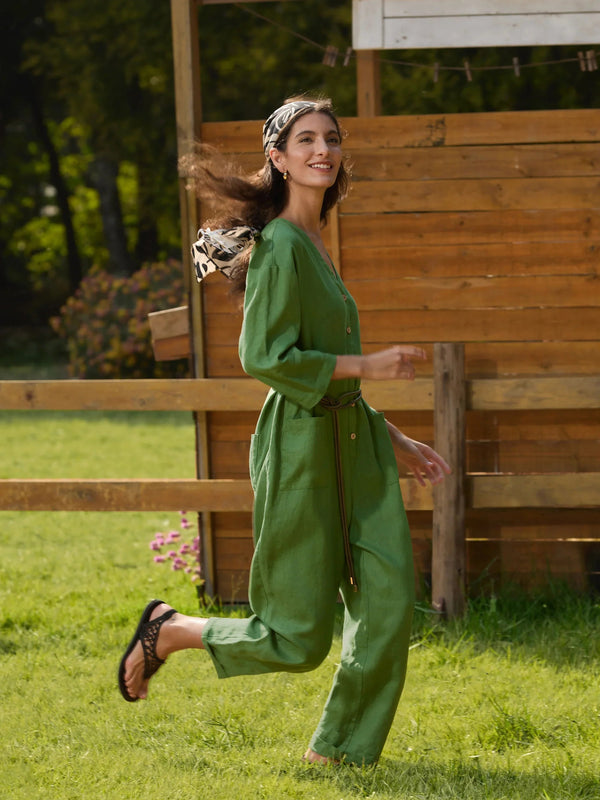 The linen jumpsuit transforms your wardrobe with its breathable, eco-friendly fabric, offering unmatched comfort and style. Feel confident and at ease in any setting, knowing you look polished and chic.