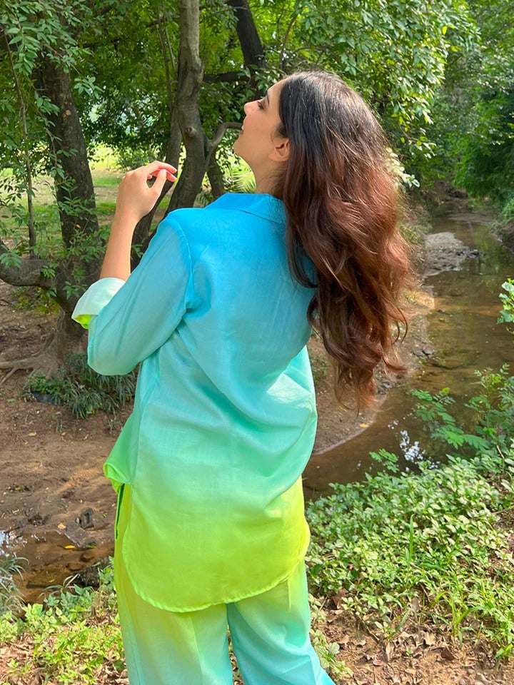 Make a statement this season in this cotton Co-ord Set. The shirt and pants are made from 100% cotton linen making it perfect and super breathable for Indian weather. The shirt can be buttoned down or kept open as per your style and the full length trousers feature a wide waistband for a super comfortable fit. The waistband is smooth in the front and elasticated in the back for maximum comfort! Special technology has been used to make sure our linen fabric wrinkles very less. Wear this set together or as separates for two distinct looks – it's perfect for any occasion! The premium fabric is colour bleeding resistant and machine washable thereby making it long lasting and easy to maintain.